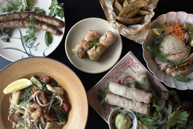 外苑前のĂn Điが手がける、ハーブやスパイスが織りなすベトナムの香りとリズムを、より自由でカジュアルな料理として表現しました。本店の美意識を受け継ぎ、チキンライスや生春巻きなどを気軽にお楽しみいただけます。